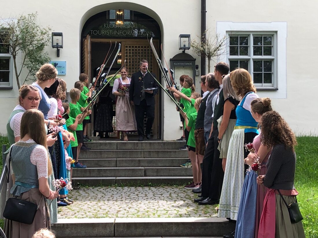 Zur Überraschung des Brautpaares waren einige Skiclubkinder zum Spalier stehen vertreten.